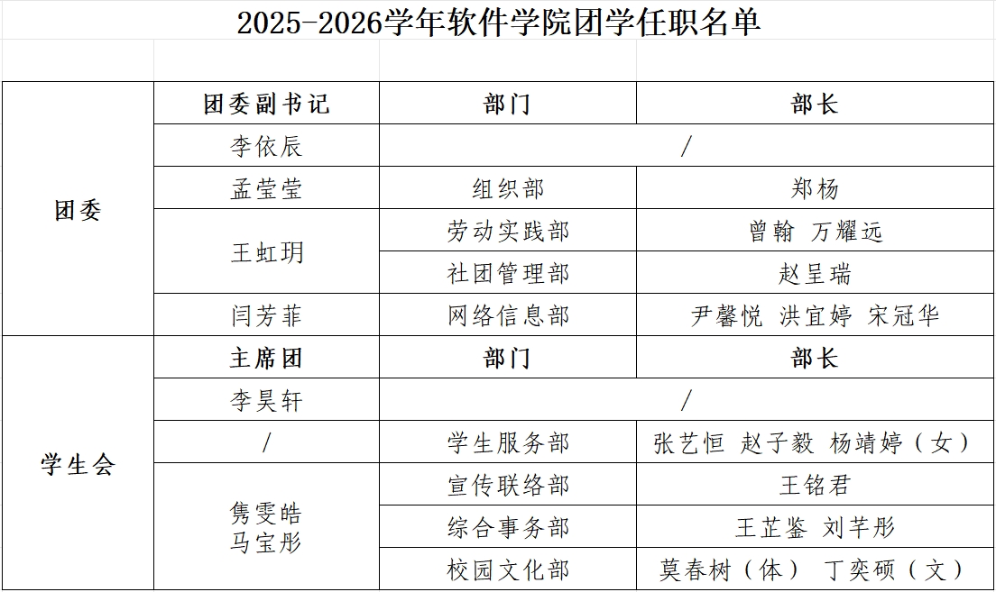 经个人申报、述职答辩、团委考核,确定李昊轩等22名同学为欧美无码 团委2025-2026学年拟选聘人员,现予以公示。如有异议,请于公示期间以书面形式向学院团委反映。