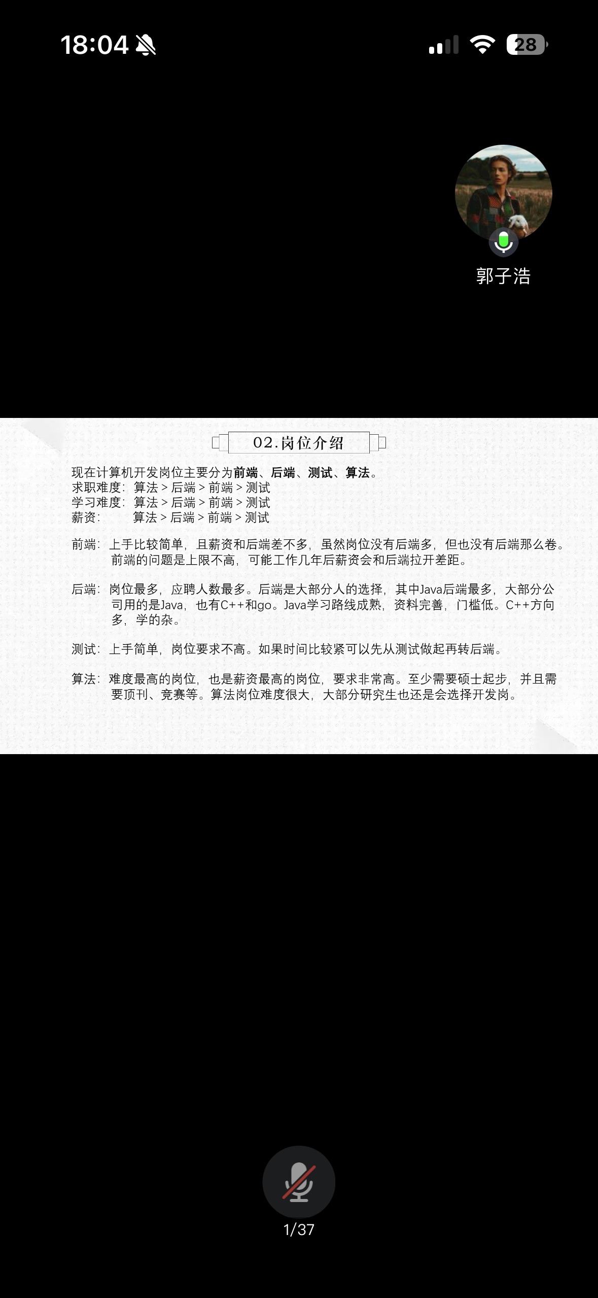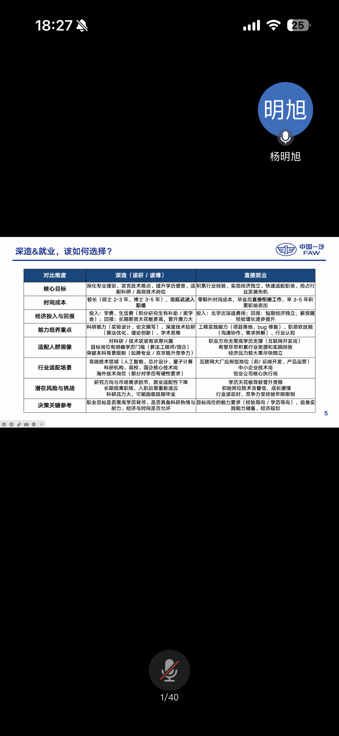 首先,郭子浩从个人情况、岗位区别、经验累积等方面展开阐述明确指出学历深造与直接就业各有利弊,应结合个人实际情况量力而行不要盲目跟风选择,针对不同岗位应明确职责和所需能力,结合自身能力有针对性开展准备,确保能力培养和技能提升与所选岗位相匹配杨明旭主要介绍当前就业形势,并强调保持持续学习能力的重要性,提出必须通过不断更新知识应对技术迭代,在满足岗位需求的同时实现个人价值创造。作为本科期间便具有丰富实践经验同学杨明旭建议大家把握大二大三寒暑假的关键期,根据个人专业方向主动探寻实习机会通过早期实践积累,既能为未来职业发展奠定基础,也可在升学求职过程中掌握主动权。针对大学不同阶段的准备内容二人形成清晰共识:大一大二应注重夯实专业基础,大三大四则需重点提升实践能力,通过知识与能力的结合,在就业竞争中构筑个人优势。