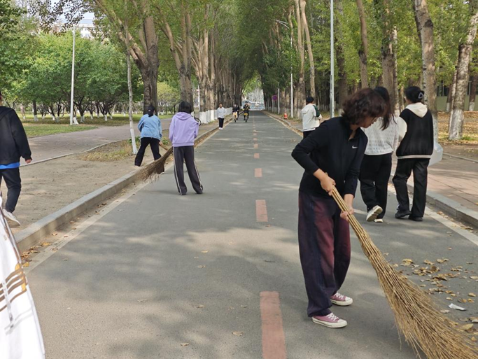 10月1日上午8点,首批志愿者在宋志平体育馆前集结,大家手持清扫工具,精神饱满,整装待发。志愿者们分为四队,按照预设路线,对校园公共区域开展全方位清扫,以实际行动守护校园环境。活动中,四支队伍分工明确、协同推进。一队从宋志平体育馆出发,沿清湖、足球场、篮球场一线向北门方向清扫;二队沿湖畔餐厅、日新楼清扫,终达中心图书馆;三队深入南苑,向王湘浩楼推进;四队则绕鼎新楼开展。大家各司其职,有的弯腰捡拾隐蔽处的垃圾,有的挥动扫帚清扫堆积的落叶,即便汗水浸湿衣衫,劳动热情依旧高涨。