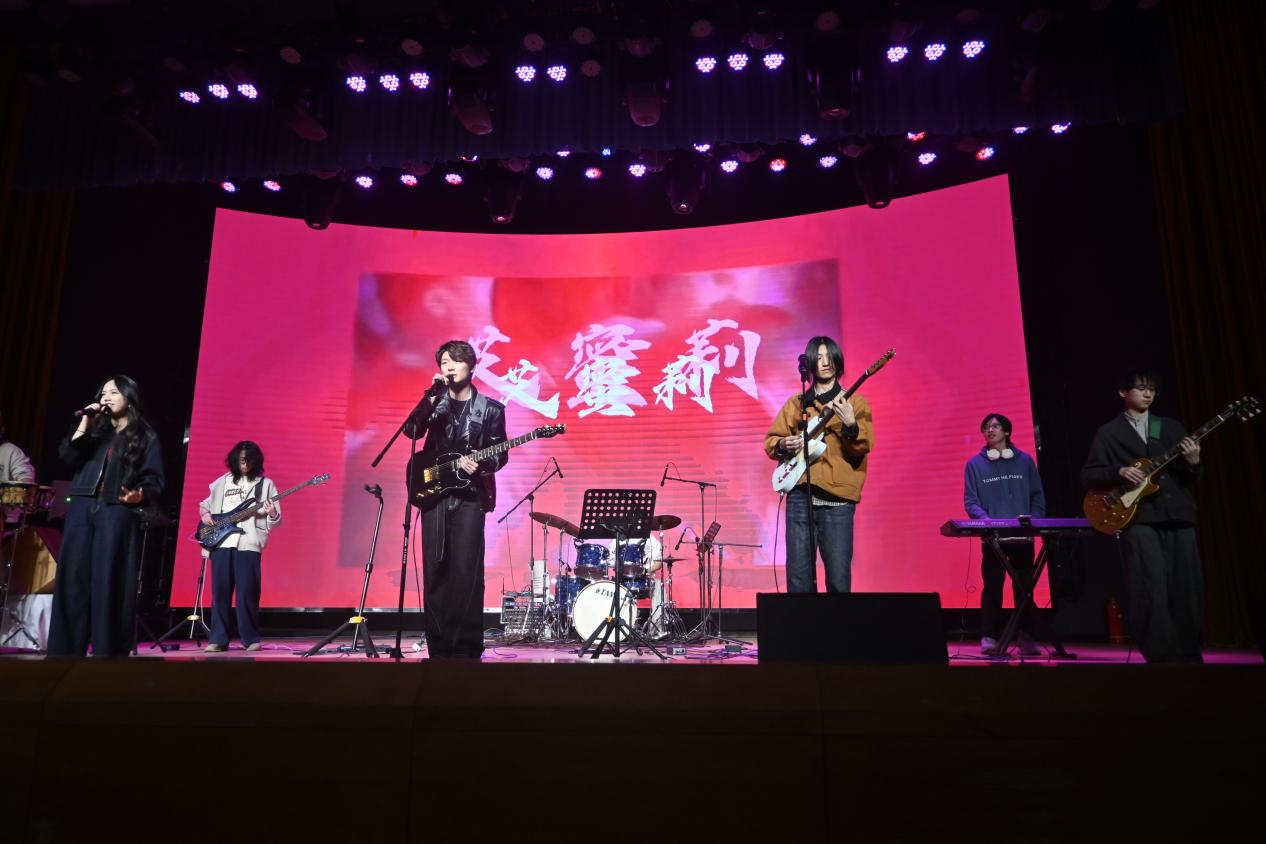 演出现场灯光璀璨,氛围热烈高涨。各乐队轮番登台,既有经典曲目的动人翻唱,更有原创曲目的惊喜亮相——饱含热爱与激情的歌词、富有感染力的旋律,让台下观众深深沉浸其中,现场反响热烈、欢呼不断。Crush舞社与JYC舞社的精彩演绎更为舞台增色添彩,灵动的舞姿与悠扬的旋律相映成趣,让舞台亮点纷呈,台下掌声与欢呼声此起彼伏,一次次将现场氛围推向高潮。